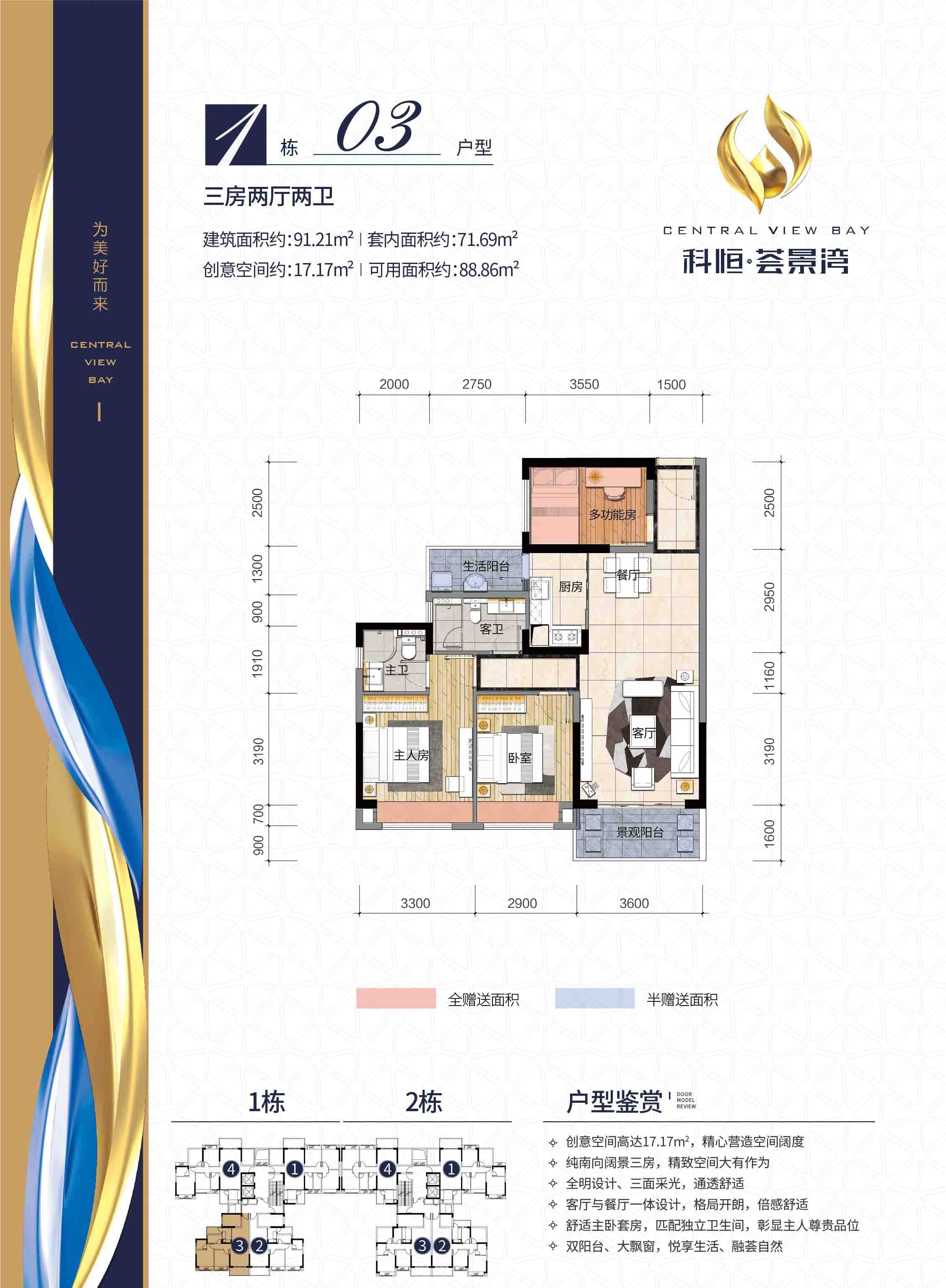 主力户型:(建筑面积)91.02-91.21㎡(三居)、100.46-116.89㎡(四居)